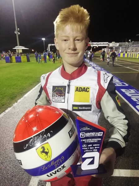 Mit einem 3. Platz in der Gesamtwertung des ADAC Kart Masters in der Klasse X30 Junioren habe ich mich für das IAME International World Final in LeMans qualifiziert. Dort werde ich mich vom 12.10. bis 19.10.19 mit den besten Fahrern aus vielen Nationen messen.